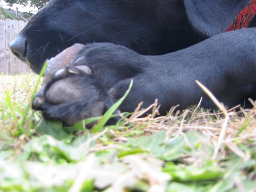 I took some photos of Rosie playing with her chew hoof in the yard this afternoon, trying to be a very good dog while the heating guys insisted upon tempting her with saws and drills and kneeling on the floor (OBVIOUSLY to play with the dog).