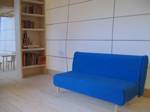 Now, back to my studio. This is what we had to work with: a projector, a screen, our photos up there and our ability to make a presentation. Here's my classmate Steph presenting her sandwich shop/living space.